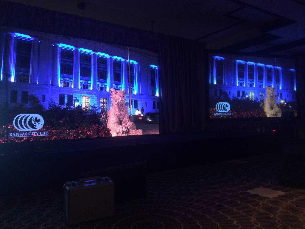 The picture on the left shows the difference between a high-definition projector (right) versus an HD LED backdrop (left). The brightness and clarity is unmistakable.